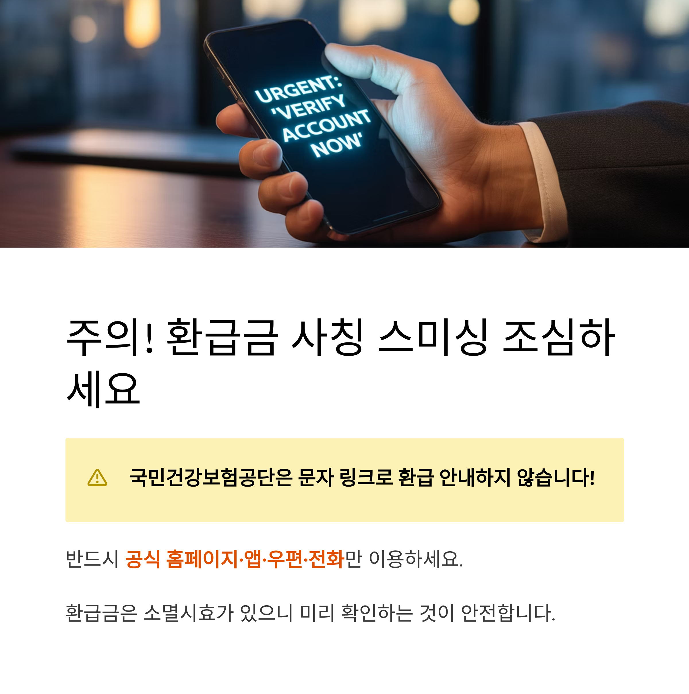 - 국민건강보험공단은 문자 링크로 환급 안내하지 않음