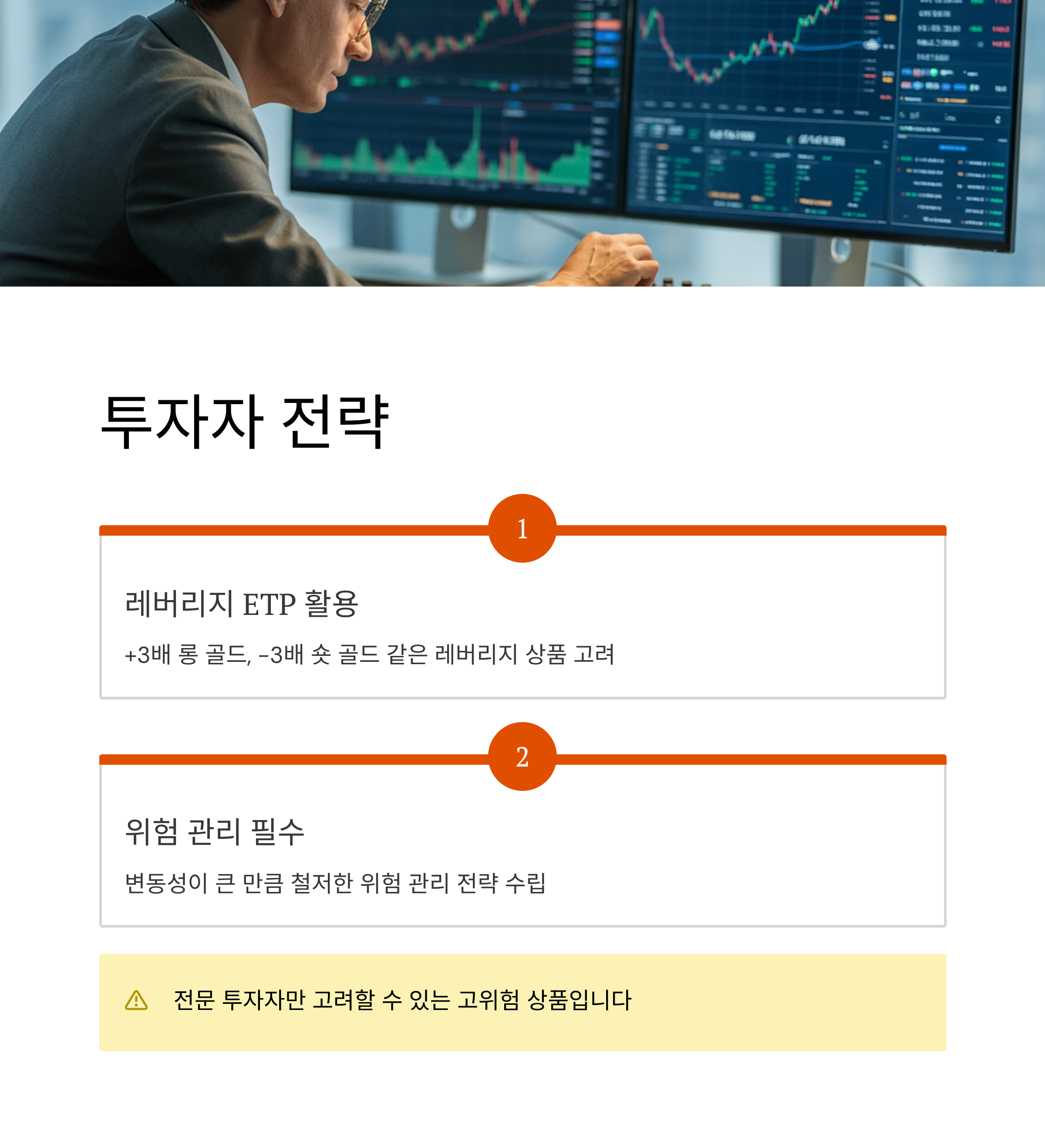 전문 투자자라면 금과 은 가격 변동성을 활용해 +3배 롱 골드, -3배 숏 골드 같은 레버리지 ETP 상품을 고려할 수 있습니다. 다만 변동성이 큰 만큼 철저한 위험 관리가 필수입니다.