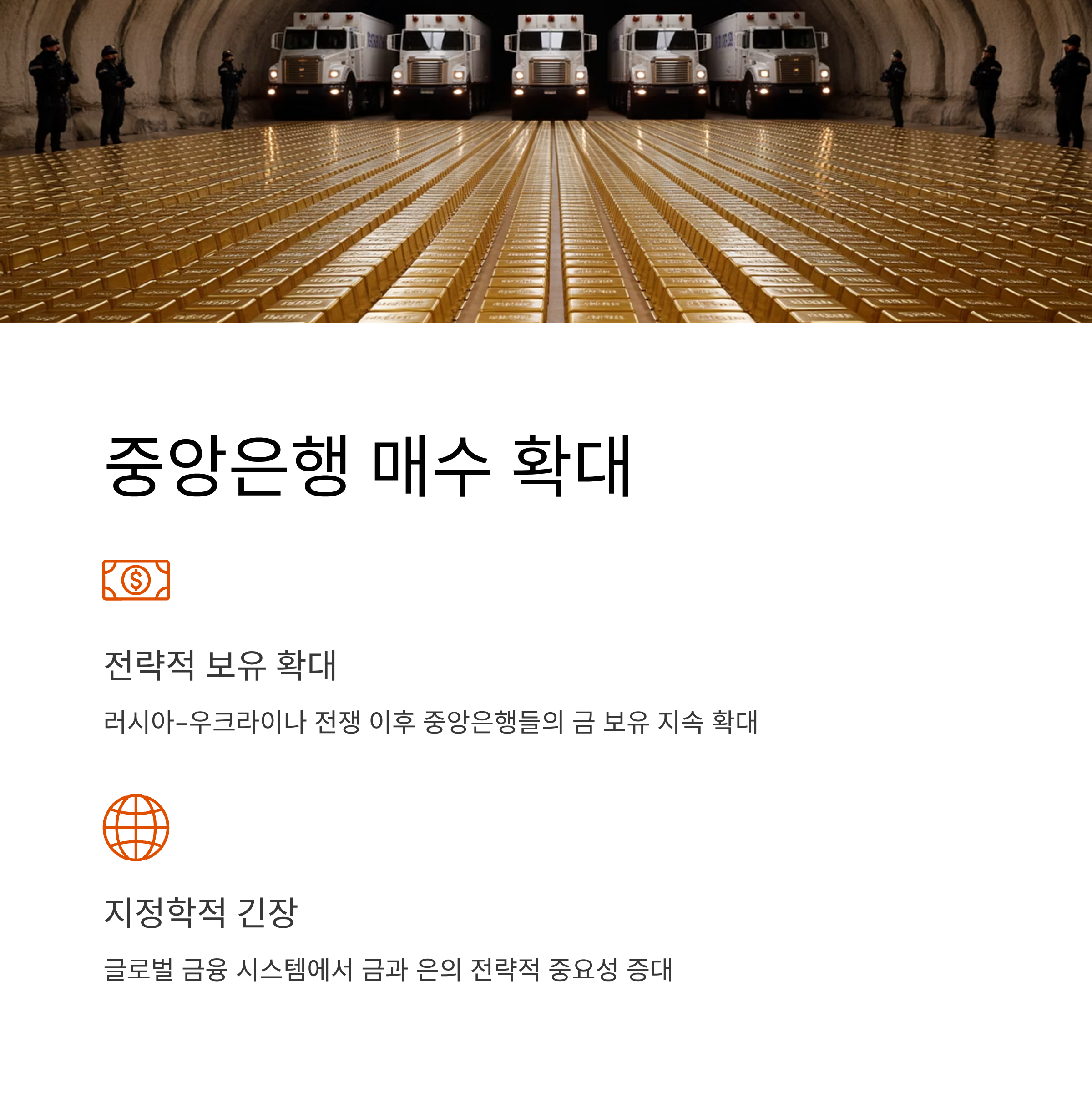 러시아-우크라이나 전쟁 이후 중앙은행들의 금 보유 확대가 이어지고 있습니다. 이는 단순한 투자 수요를 넘어 글로벌 금융 시스템에서 금과 은의 전략적 중요성을 높이고 있습니다.