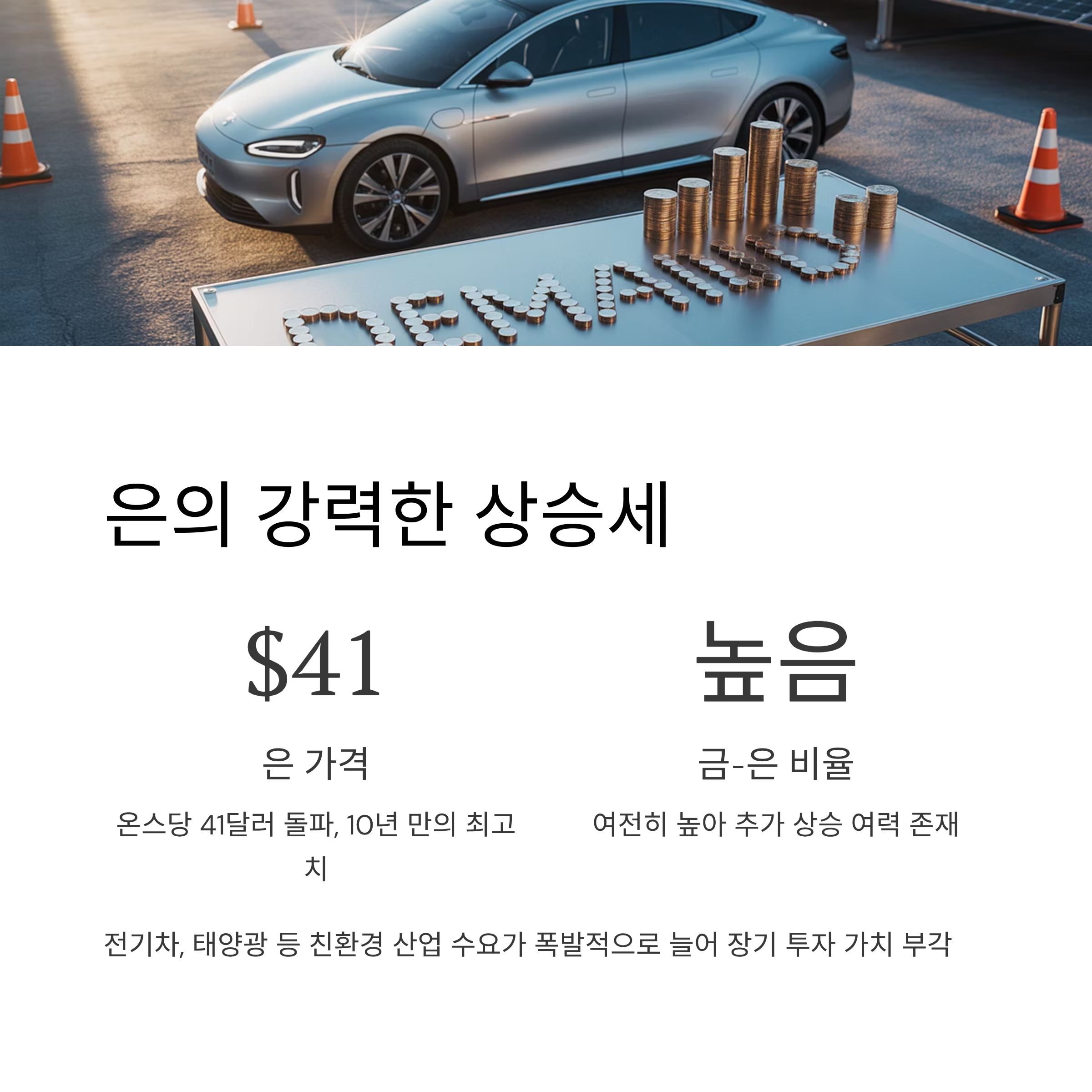 | 은 | 41달러/온스 | 산업·투자 이중 수요 |