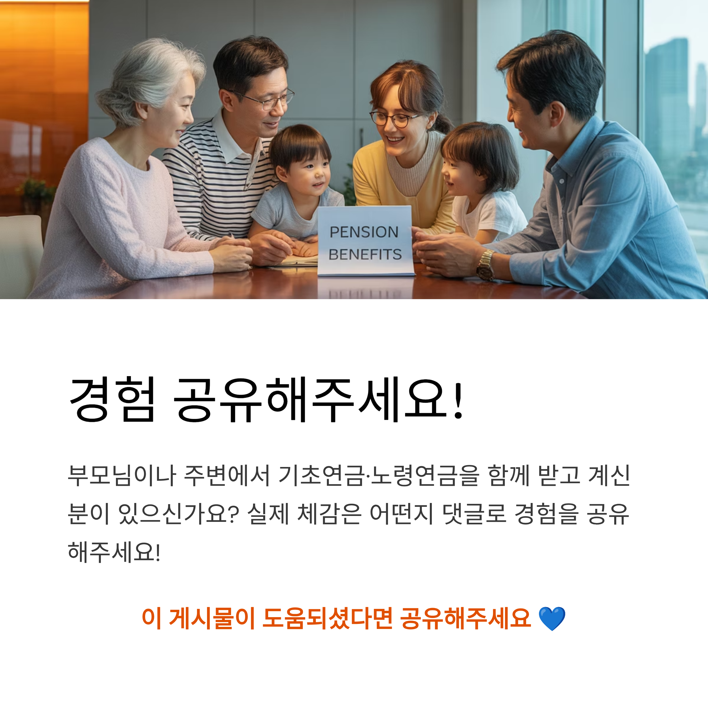 여러분은 혹시 부모님이나 주변에서 기초연금·노령연금을 함께 받고 계신 분이 있으신가요? 실제 체감은 어떤지 궁금하네요.
