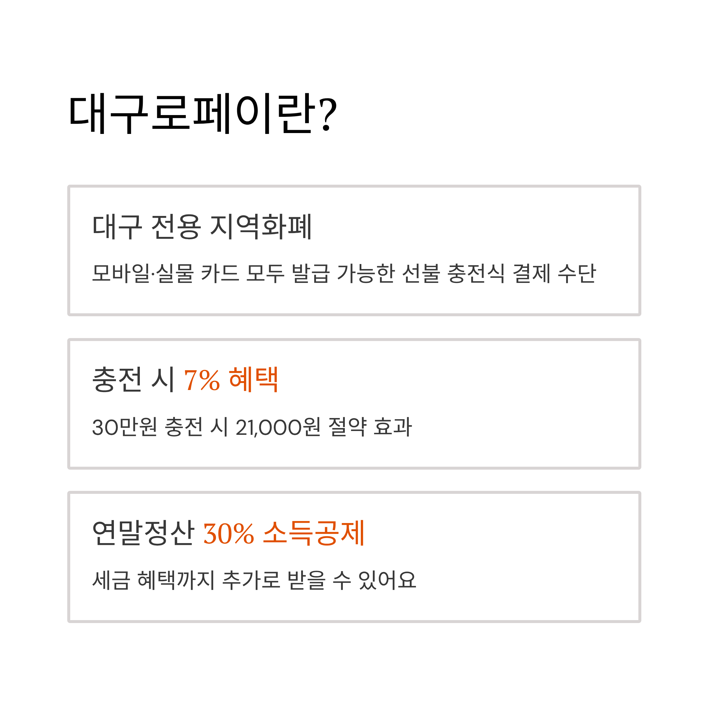 대구로페이는 생활비 절감 + 지역경제 기여라는 두 가지 효과를 동시에 누릴 수 있는 카드입니다.