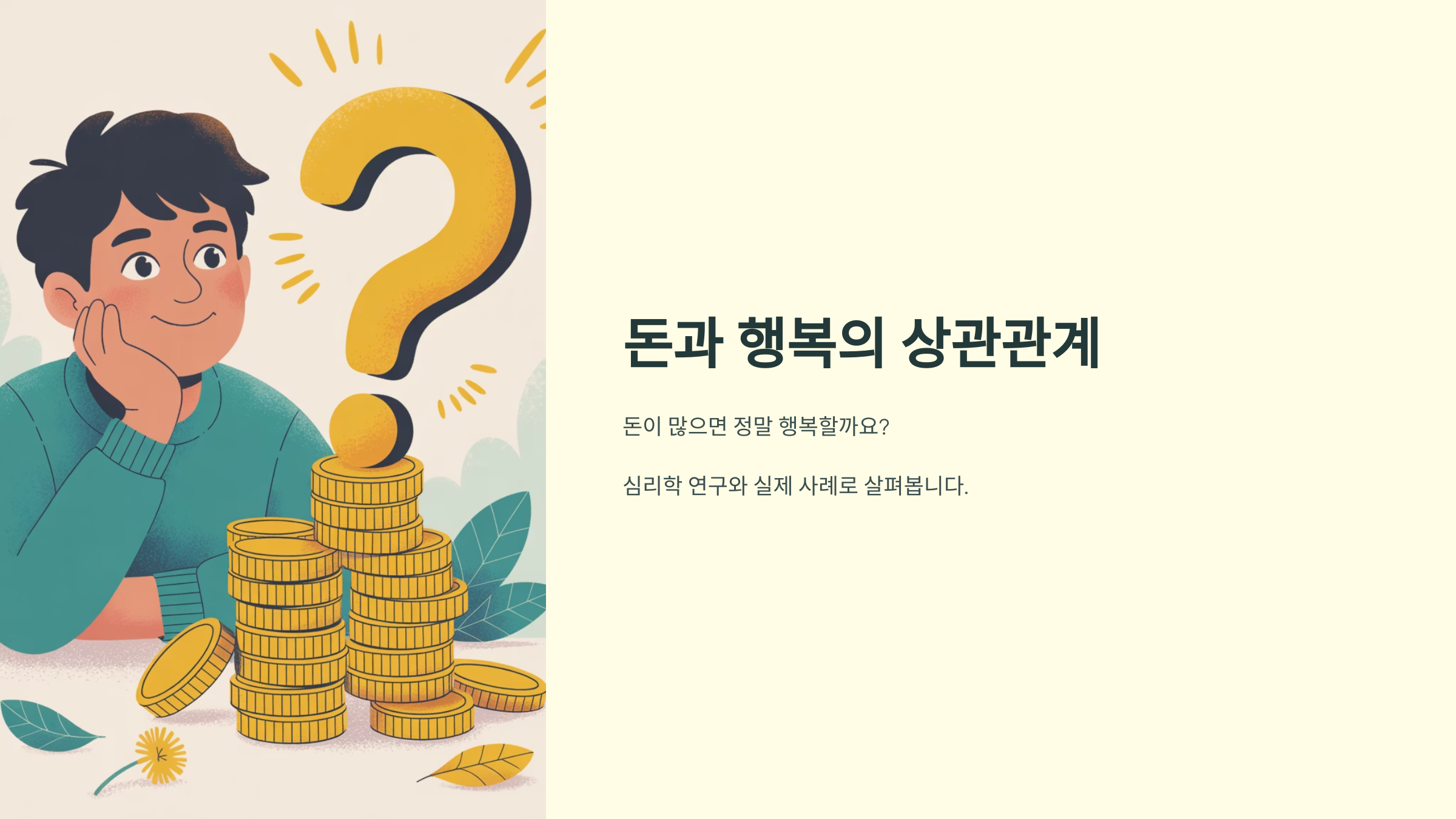 돈과 행복의 관계를 심리학과 실제 사례로 풀어봅니다. 당신의 생각도 궁금합니다