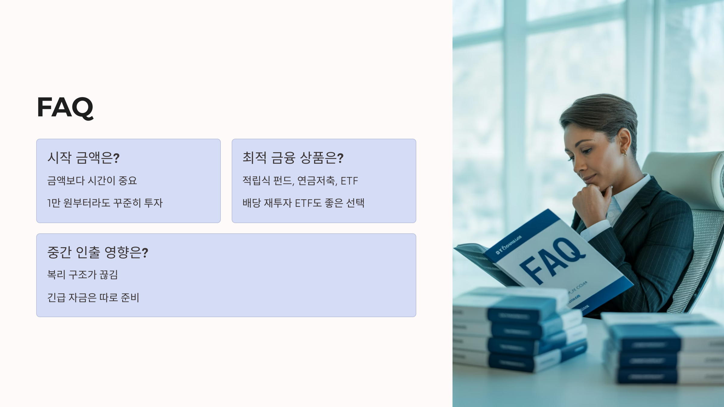 블로그 독자분 중 한 분은 “10년 전 소액으로 시작한 적립식 펀드가 지금은 내 인생 첫 목돈이 되었다”고 하셨습니다. 이는 복리의 전형적인 성공 사례로, 복리의 핵심은 ‘얼마나 오래, 꾸준히 하느냐’입니다.