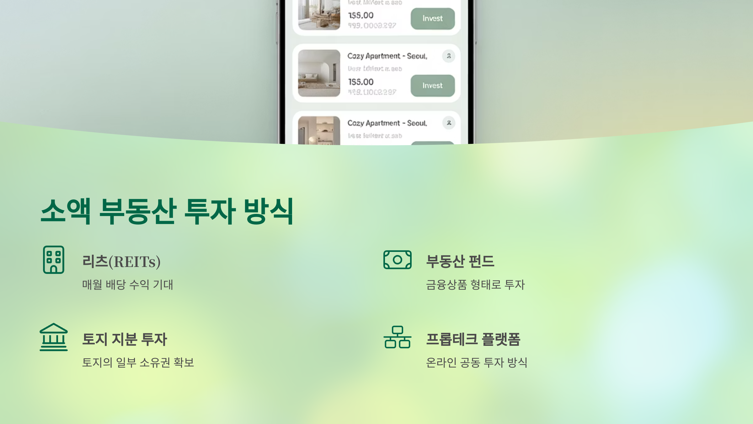 부동산은 큰돈이 들어가는 자산이라는 인식이 있지만, 최근엔 다양한 형태의 소액 투자 방식도 있습니다. 예를 들어, 리츠(REITs), 부동산 펀드, 토지 지분 투자, 프롭테크 플랫폼을 통한 공동 투자 등이 대표적입니다. 마케팅 업계에서도 다양한 타깃을 위한 상품 다변화가 이뤄지듯, 부동산 시장도 접근성이 점점 낮아지고 있습니다.