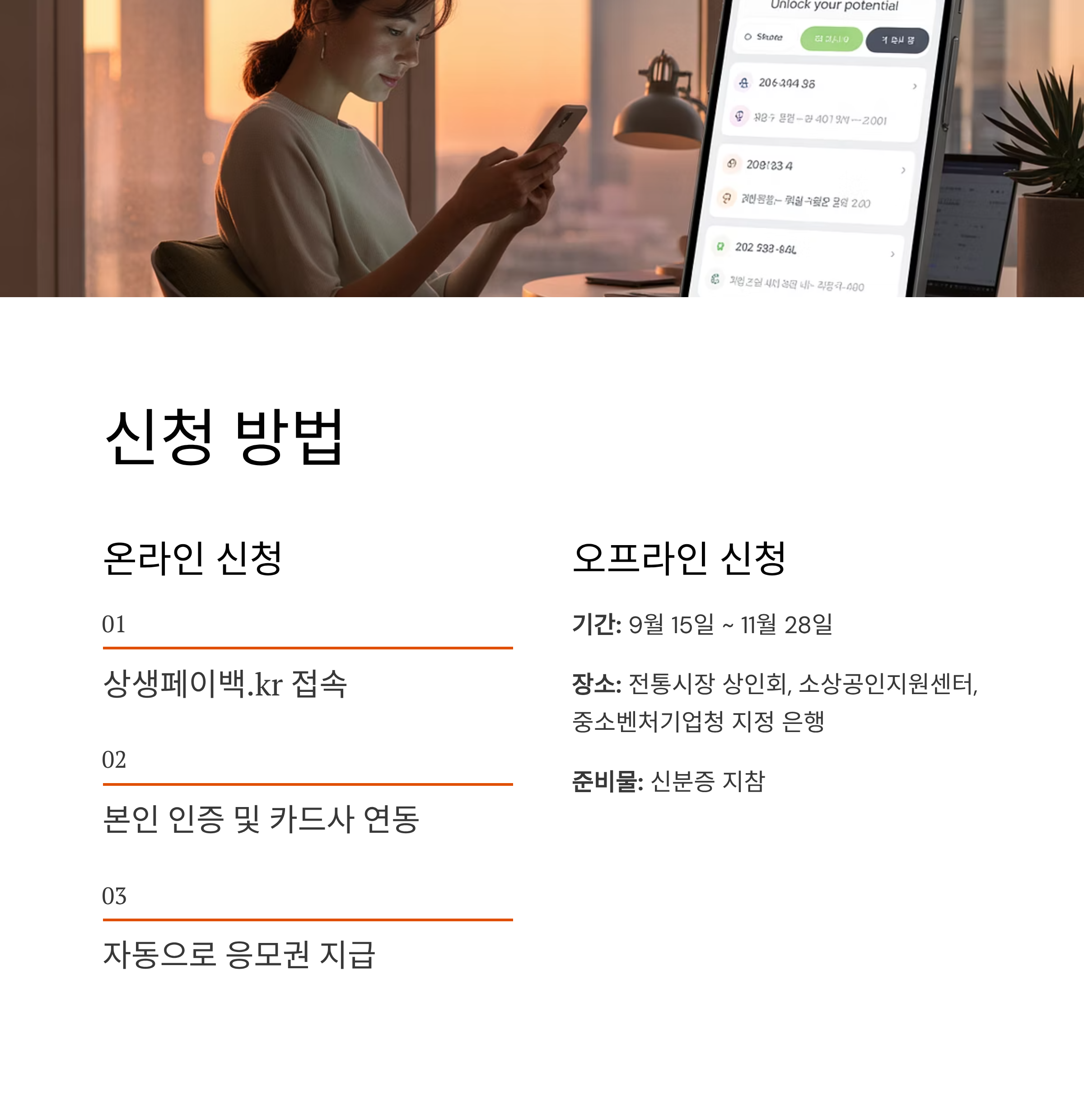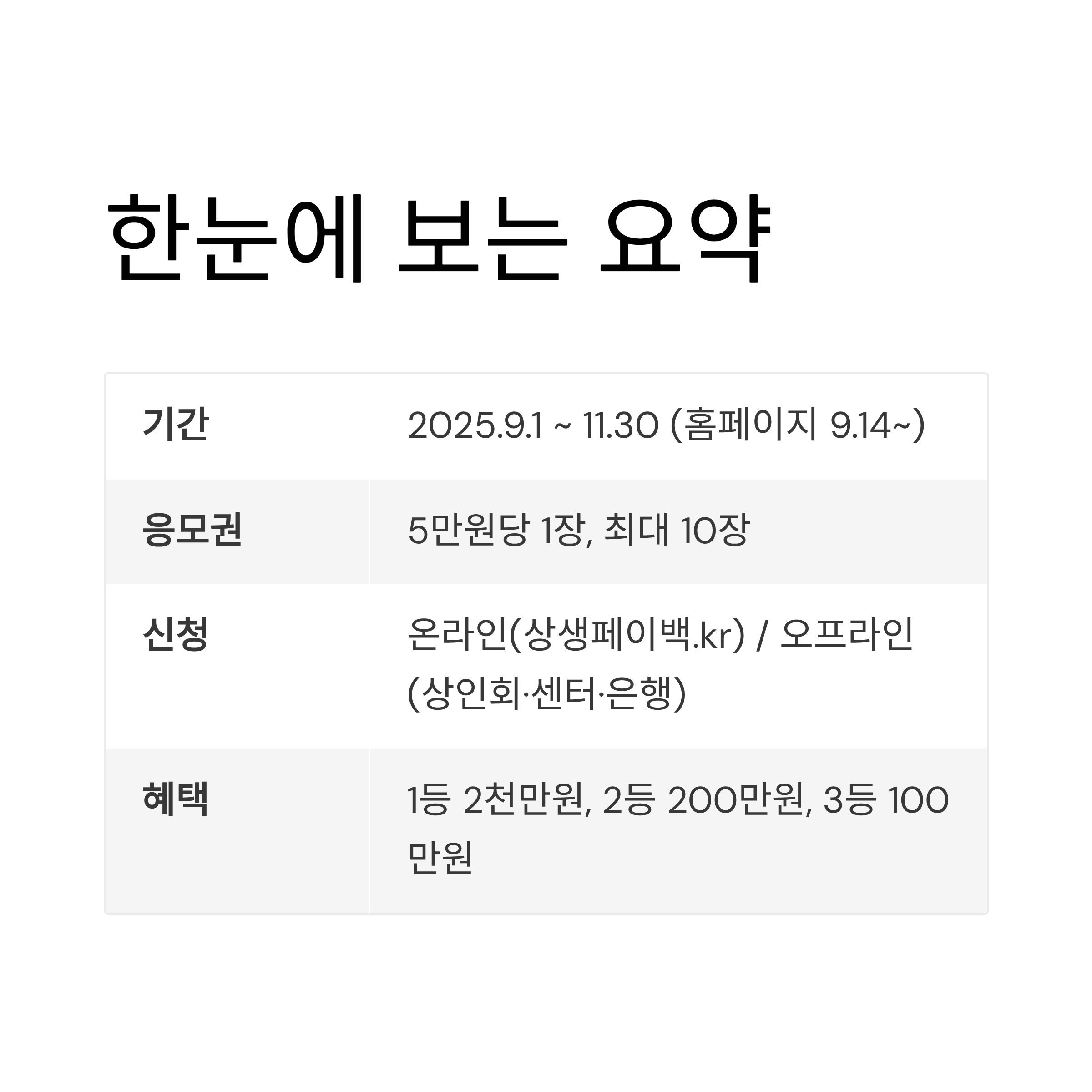 | 신청 | 온라인(상생페이백.kr) / 오프라인(상인회·센터·은행) |