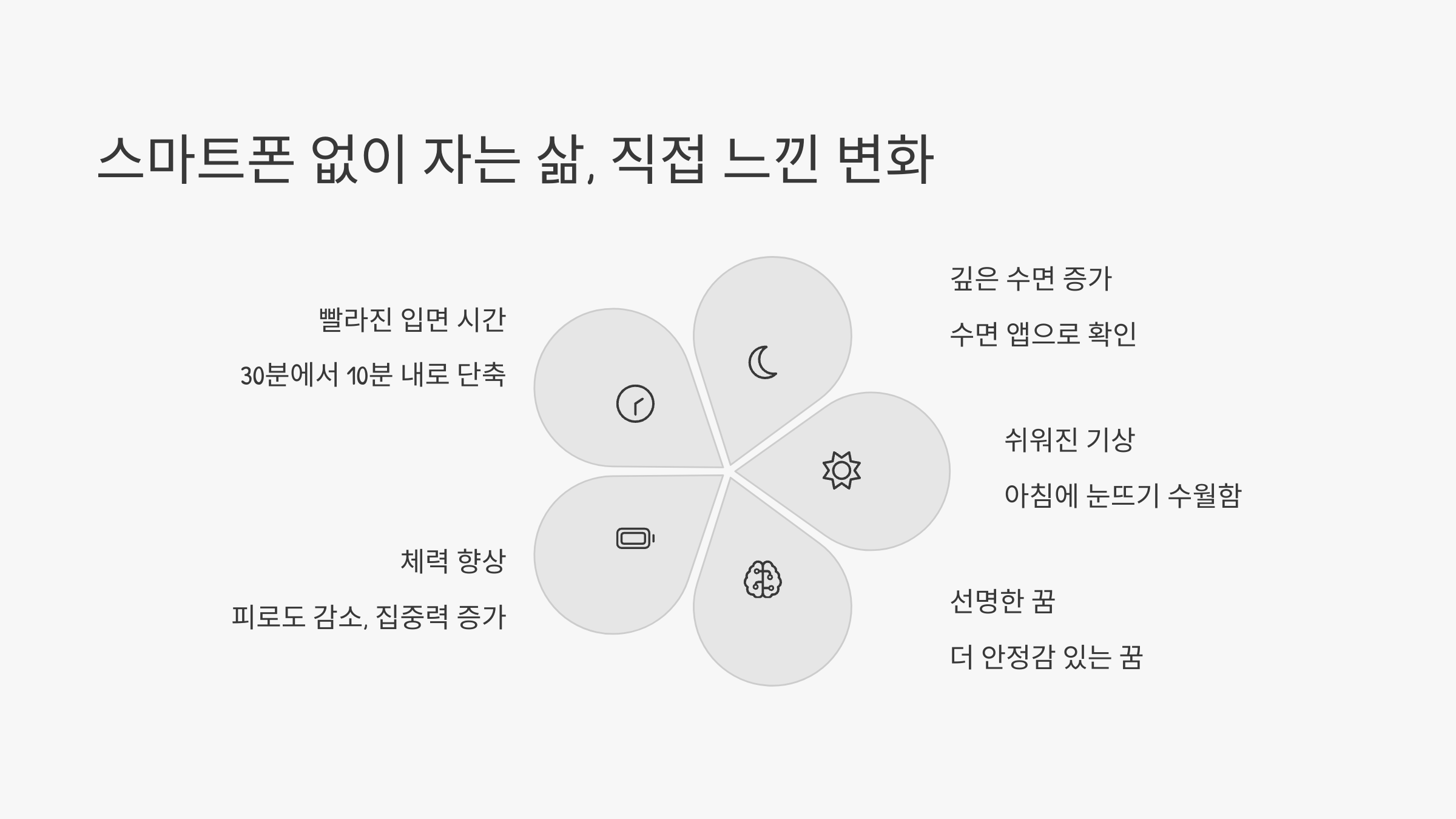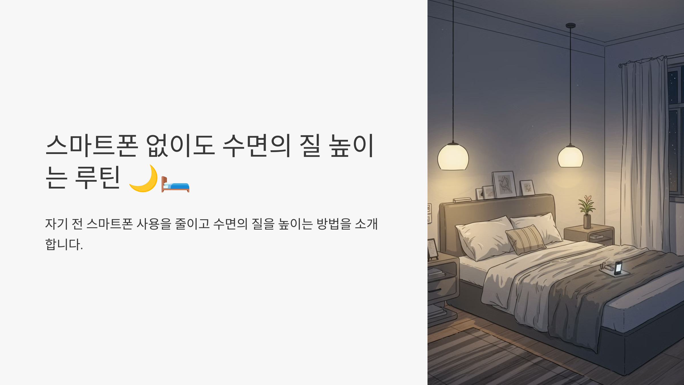이렇게 하면 스마트폰 없이도 **훨씬 빠르고 깊게 잠들 수 있어요**.