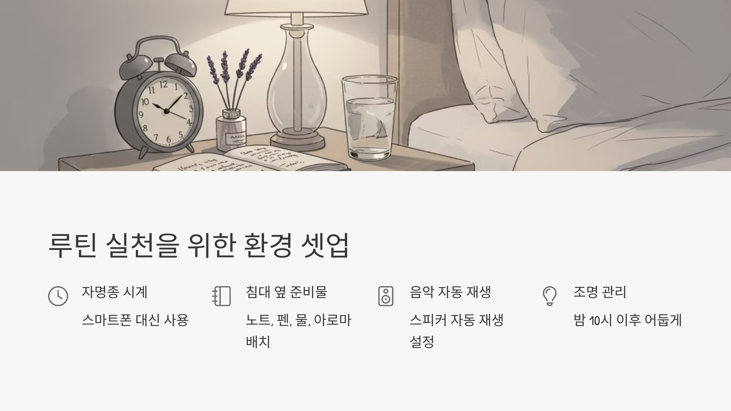 - **나만의 ‘수면 루틴 세트’로 만들기 (눈 감기 전에 생각 안 나게)**