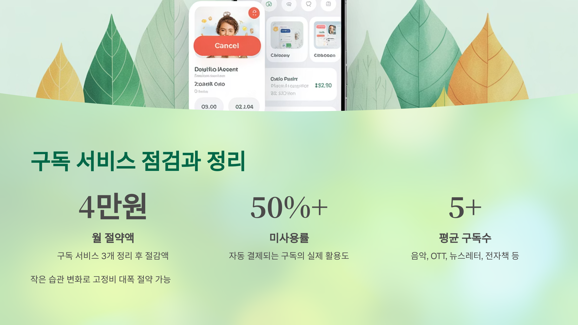 제가 컨설팅했던 직장인 독자 한 분은 구독 서비스 5개 중 3개를 정리한 후 한 달에 4만 원 이상 절약하게 되었다고 했습니다. 구독 서비스 정리는 작은 습관이지만 고정비 절약에 큰 도움이 됩니다.
