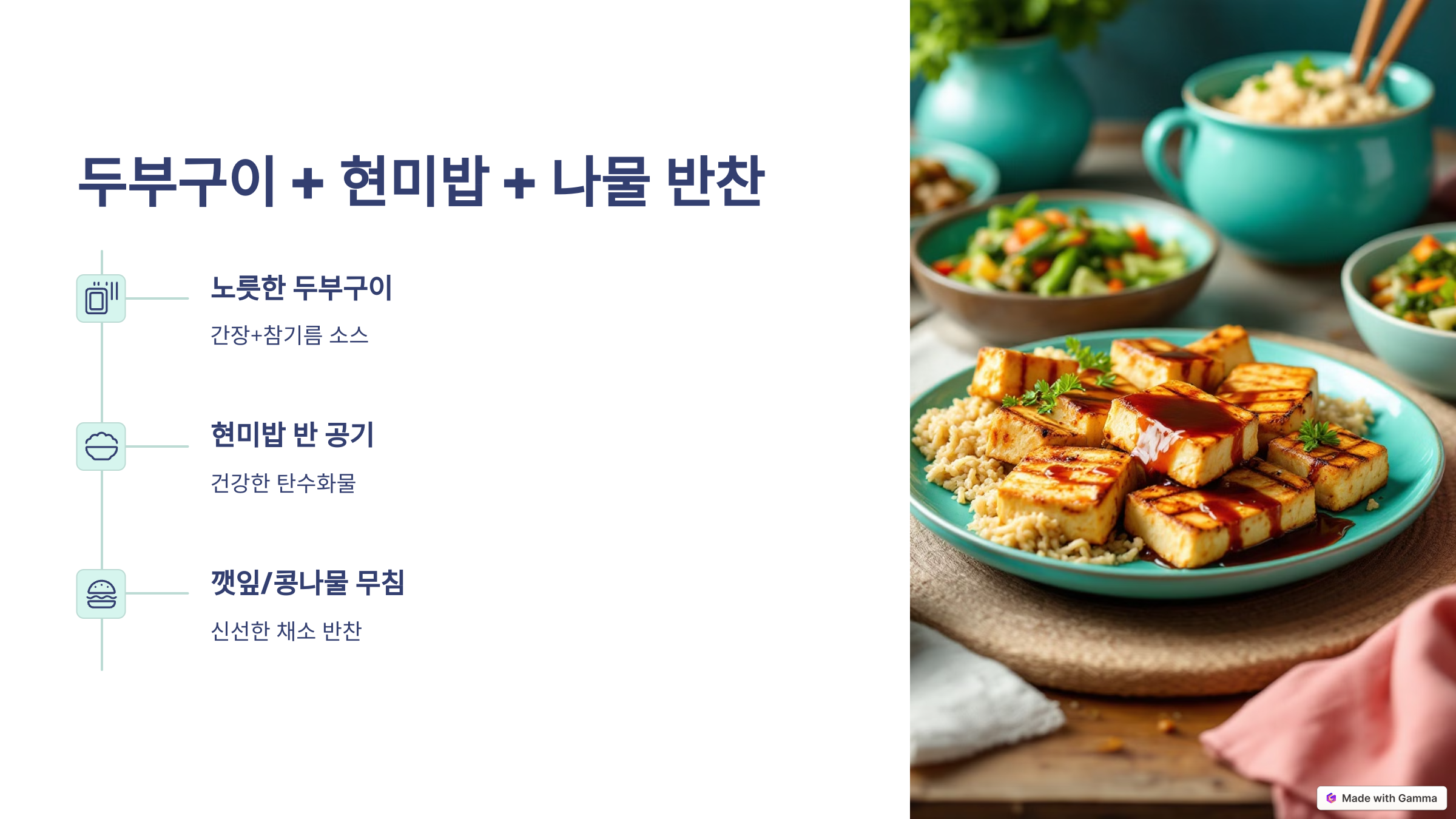 - 두부구이 + 현미밥 + 나물 반찬
