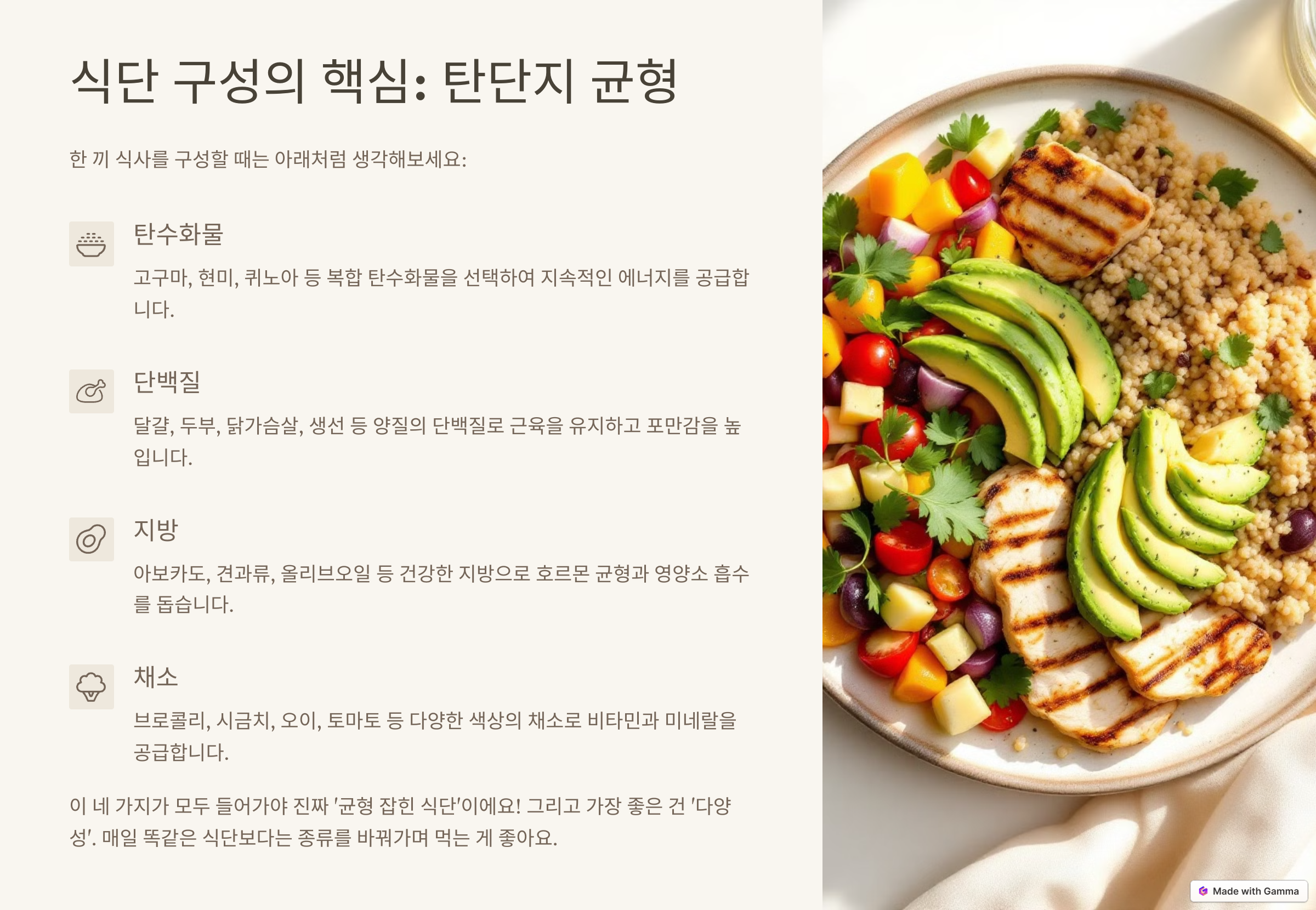 무리하지 않고, 내 입맛에 맞으면서도 영양 균형을 갖춘 식사가 진짜 건강식입니다.