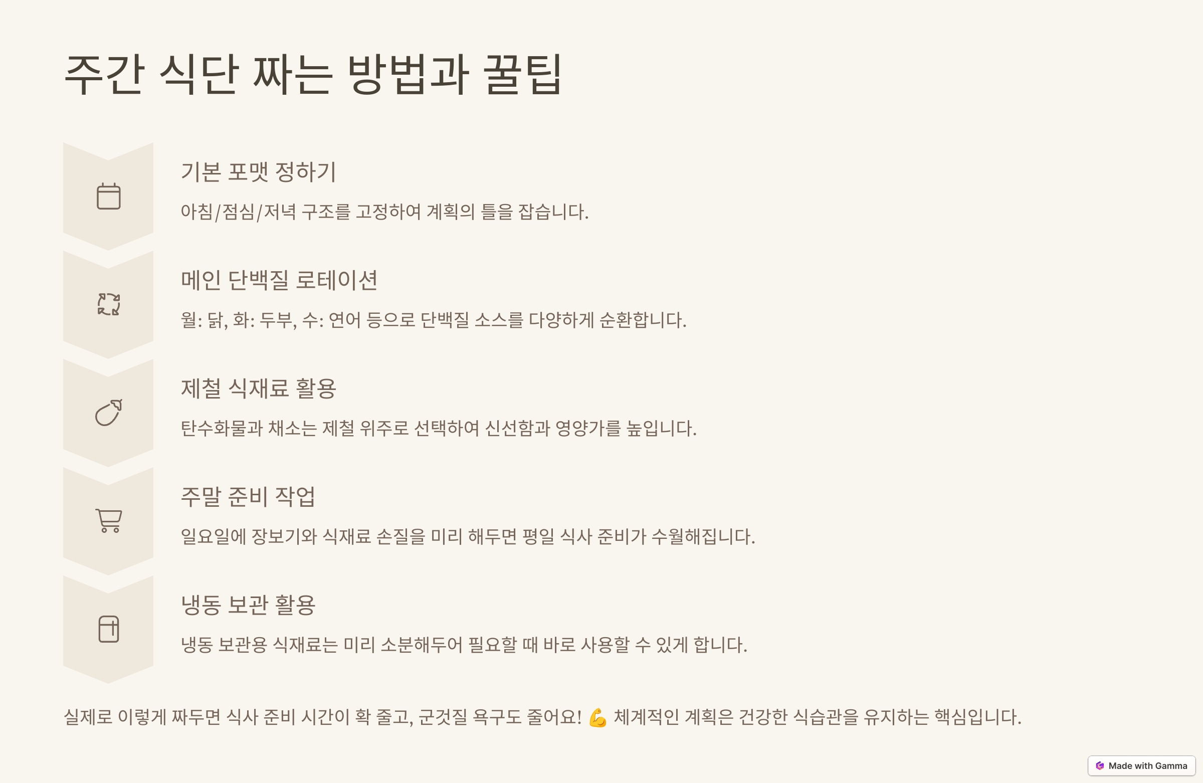 실제로 이렇게 짜두면 식사 준비 시간이 확 줄고, 군것질 욕구도 줄어요! 💪