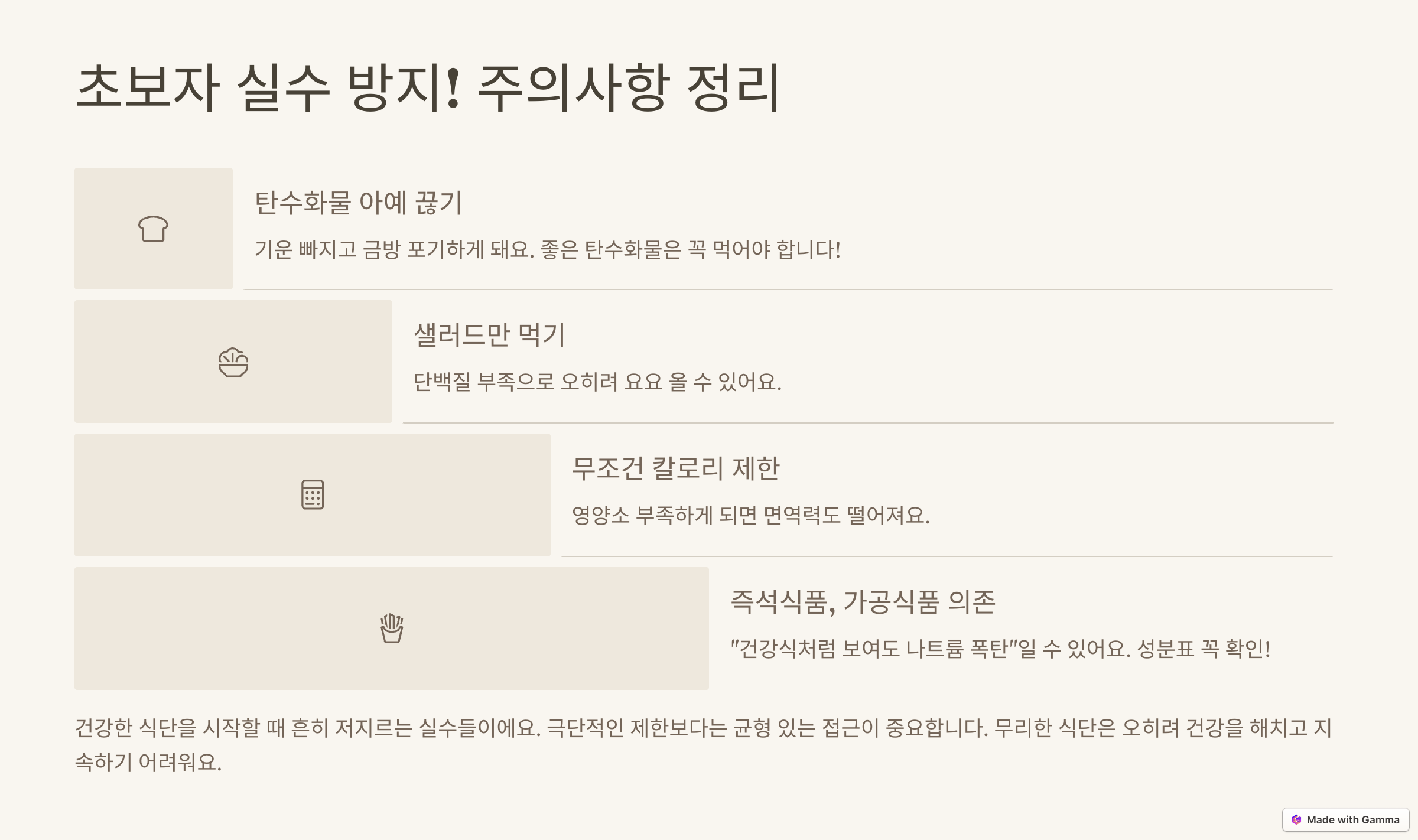 가장 중요한 건 **지속 가능한 식단**이라는 점!