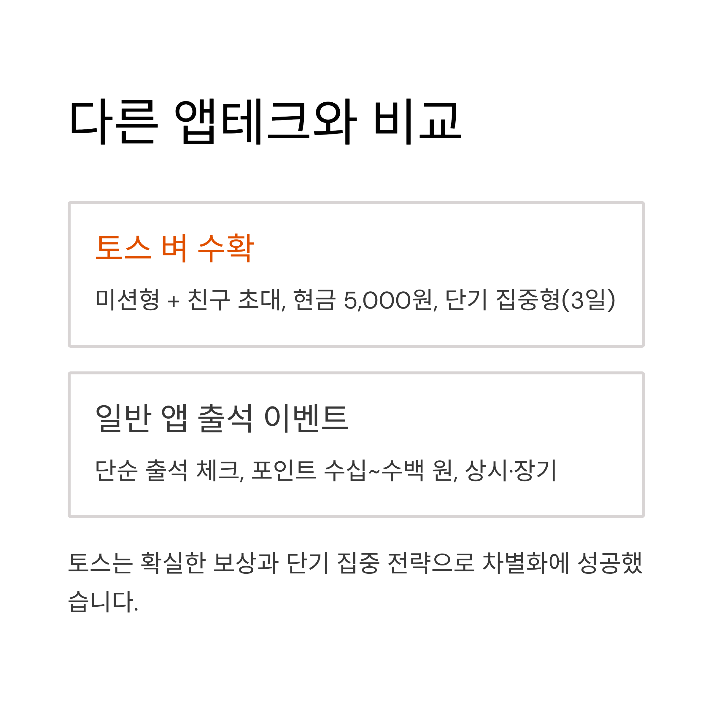 👉 토스는 확실한 보상과 단기 집중 전략으로 차별화에 성공했습니다.