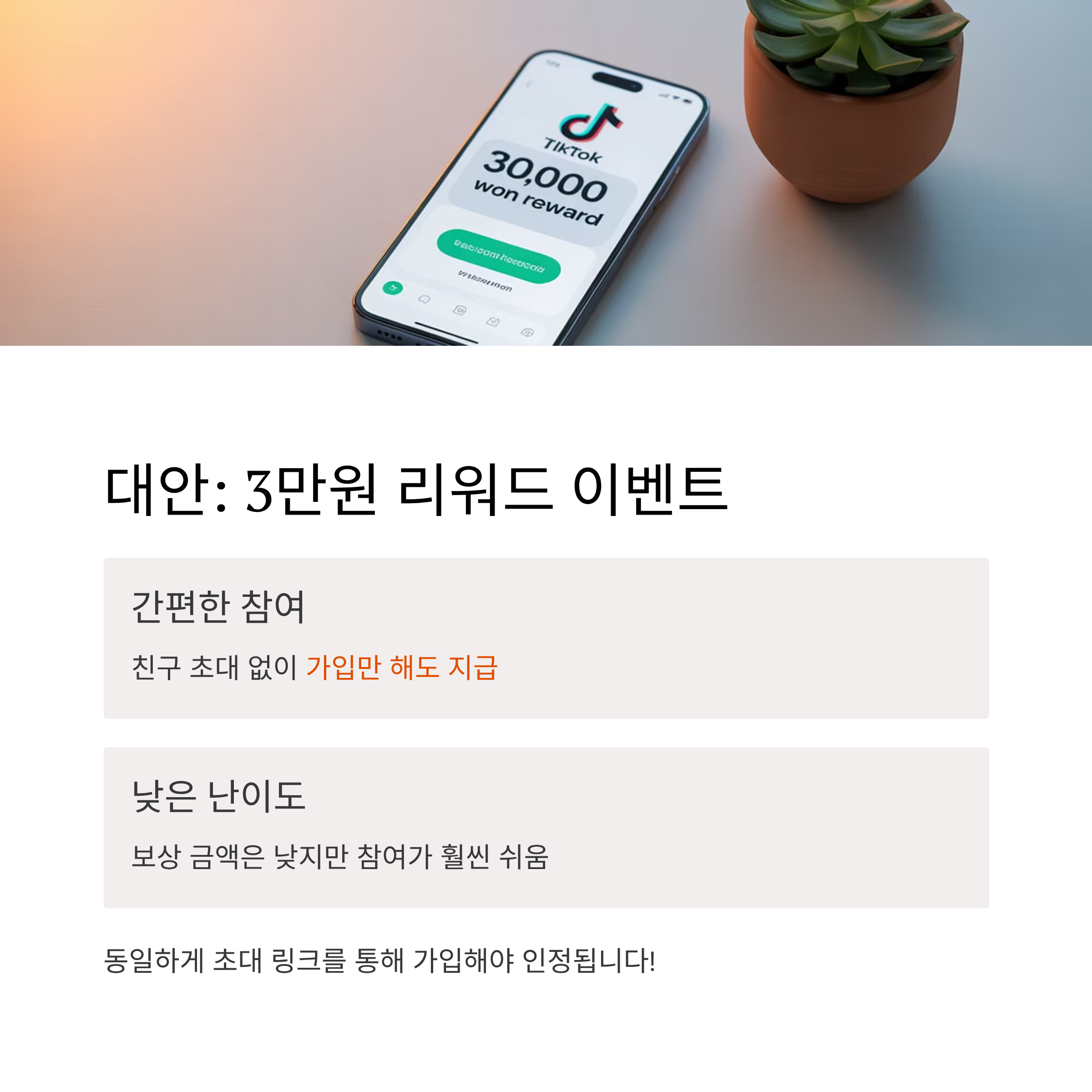 | 단순 가입 | 3만원 | 초대 링크 통해 본인 가입 | 쉬움 |