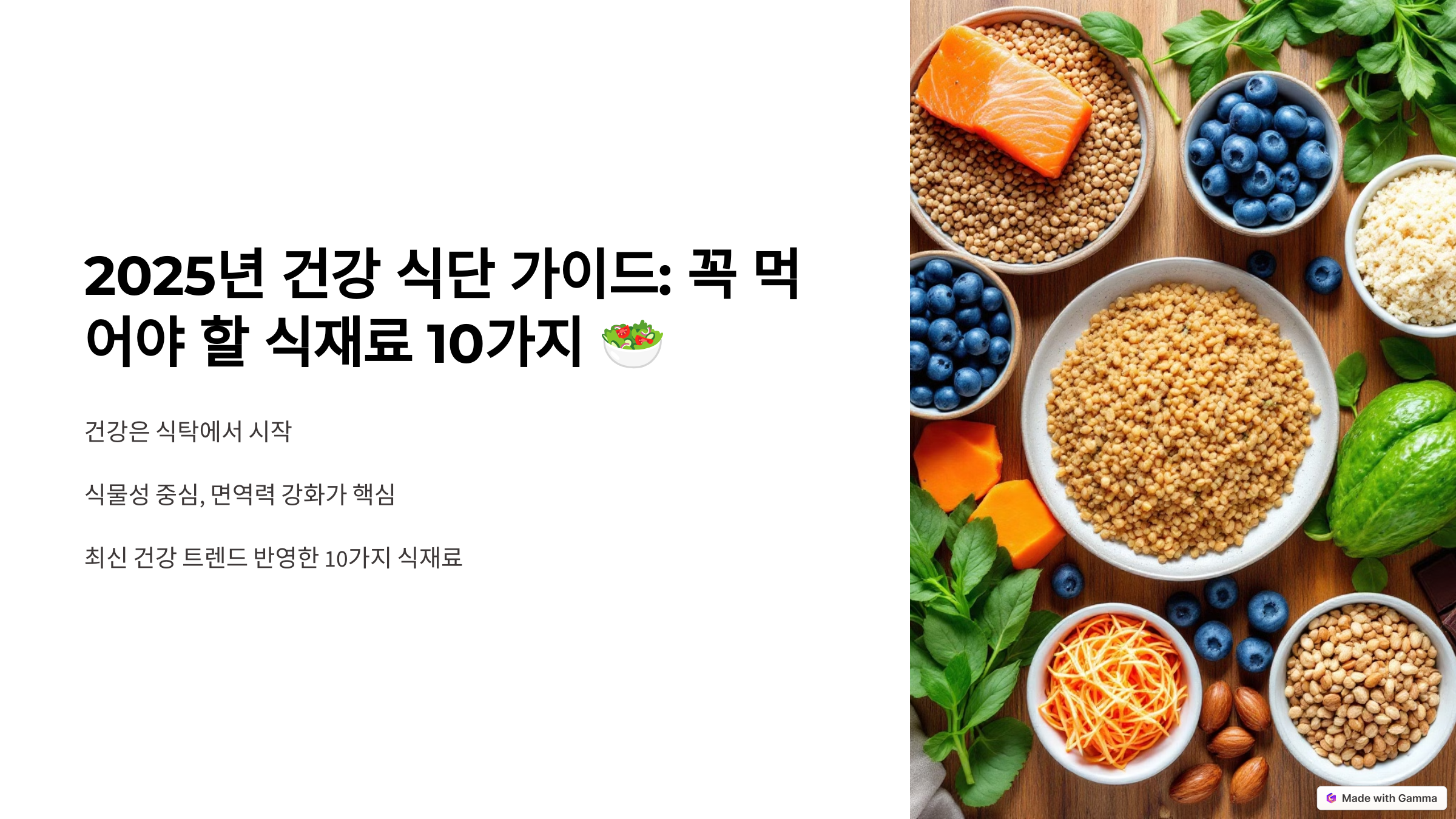 태그: 건강식단, 2025건강트렌드, 슈퍼푸드, 식물성식단, 면역력강화, 식단가이드, 건강한습관, 식이섬유, 항산화, 완전단백질