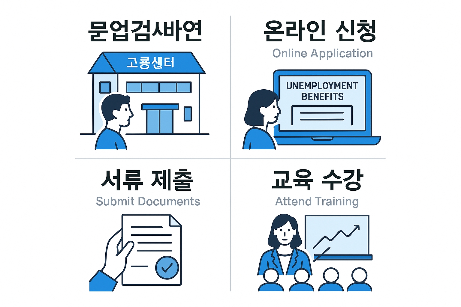 실업급여 신청은 복잡해 보이지만, 단계별로 차근차근 준비하면 어렵지 않습니다.