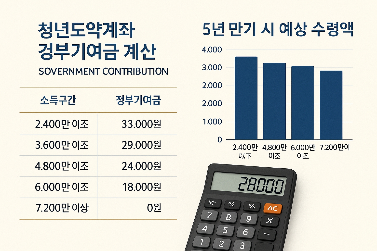 실제 수령액은 가입은행, 소득수준, 우대조건 충족 여부에 따라 달라집니다 서민금융진흥원.