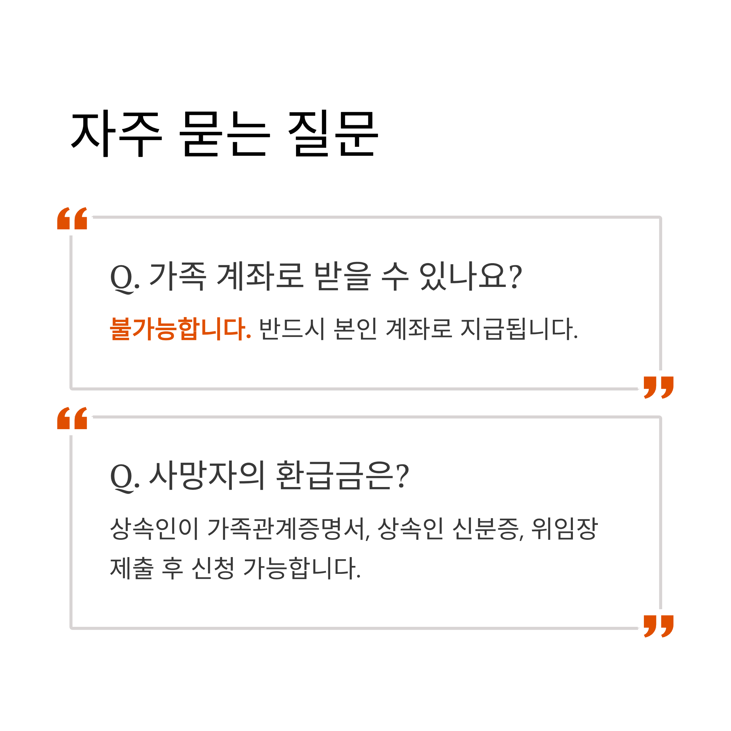 → 불가능합니다. 반드시 본인 계좌로 지급. - Q. 사망자의 환급금은?