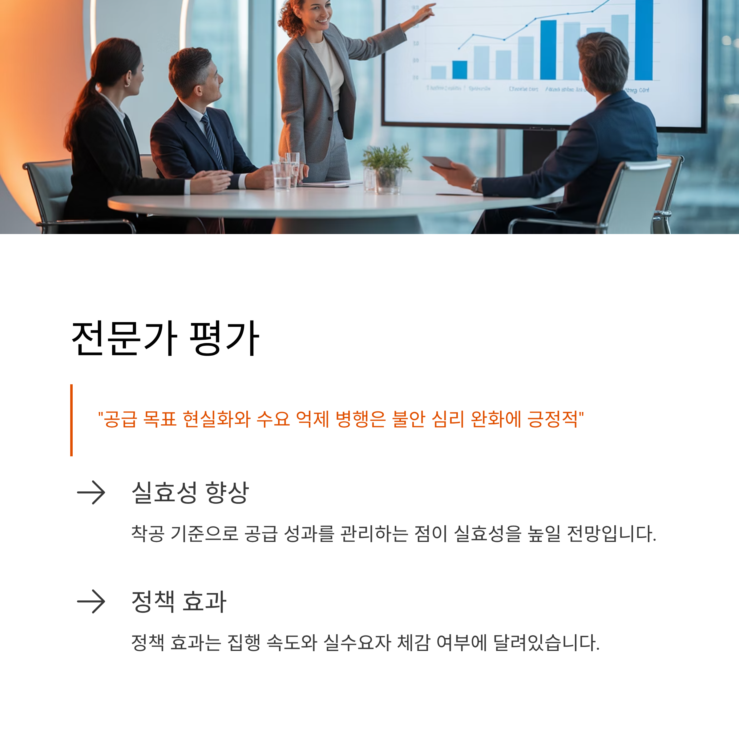 - 공급 목표 현실화 + 수요 억제 병행은 불안 심리 완화에 긍정적