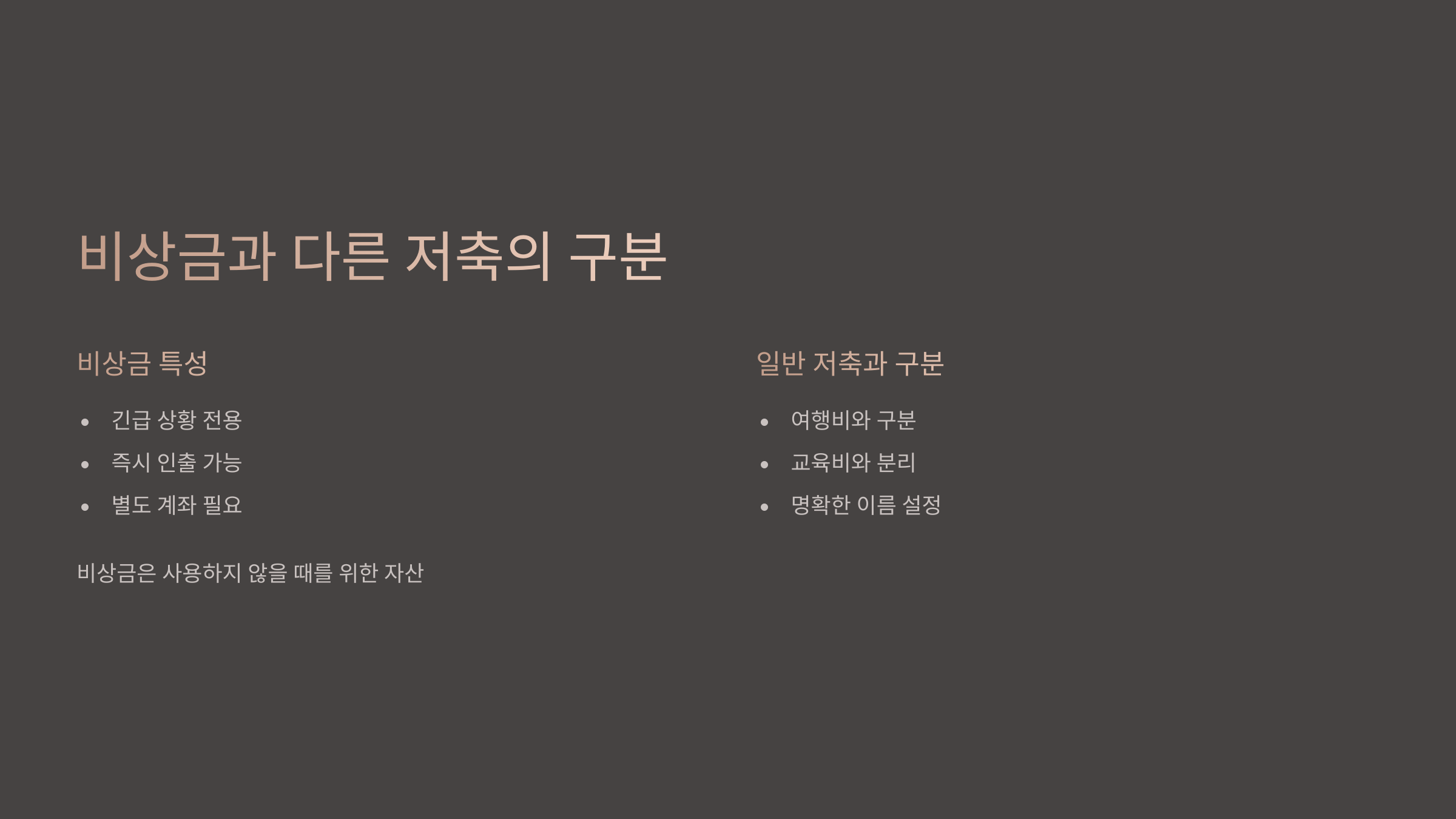 비상금과 다른 저축의 구분 필요성